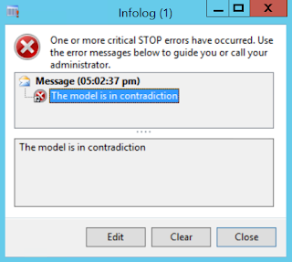 [SysEntryPointAttribute(true)] publicboolean solve(int _a, int _b) { InteropPermission interopPermission; Microsoft.Dynamics.Ax.Frameworks.Controls.ProductConfiguration.ProductConfigurationServer serverSolver; str modelXml = "<Model name=\"Alex\"><Component name=\"Alex\" componentId=\"52565427706\" instanceId=\"1\"><Attribute name=\"A\" displayName=\"A\" uniqueId=\"11290926482\" instanceId=\"2\" type=\"integer\"><IntegerDomain from=\"0\" to=\"1\" /></Attribute><Attribute name=\"B\" displayName=\"B\" uniqueId=\"11290926483\" instanceId=\"3\" type=\"integer\"><IntegerDomain from=\"0\" to=\"1\" /></Attribute><Constraint constraintId=\"AB\" uniqueId=\"11290924754\" constraintText=\"Implies[ A == 1, B == 0]\" /></Component></Model>"; boolean isFinished; str boundValues; str userSelectedValues = strFmt("<Session><Component name=\"Alex\" uniqueId=\"\"><Attribute name=\"A\" uniqueId=\"11290926482\" isUserSelected=\"1\" type=\"integer\" value=\"%1\" /><Attribute name=\"B\" uniqueId=\"11290926483\" isUserSelected=\"1\" type=\"integer\" value=\"%2\" /></Component></Session>", _a, _b); PCExecuteVariantConfiguration executeVariantConfiguration = PCExecuteVariantConfiguration::construct(); PCConfigurationState configurationState = PCConfigurationState::construct(); boolean ret = false; interopPermission = new InteropPermission(InteropKind::ClrInterop); interopPermission.assert(); //bp deviation documented serverSolver = new Microsoft.Dynamics.Ax.Frameworks.Controls.ProductConfiguration.ProductConfigurationServer(modelXml); serverSolver.set_UserSelectedValues(userSelectedValues); info(userSelectedValues); isFinished = serverSolver.Solve(); if (isFinished) { boundValues = serverSolver.get_BoundValues(); ret = true; } else { ret = false; } CodeAccessPermission::revertAssert(); return ret; } |